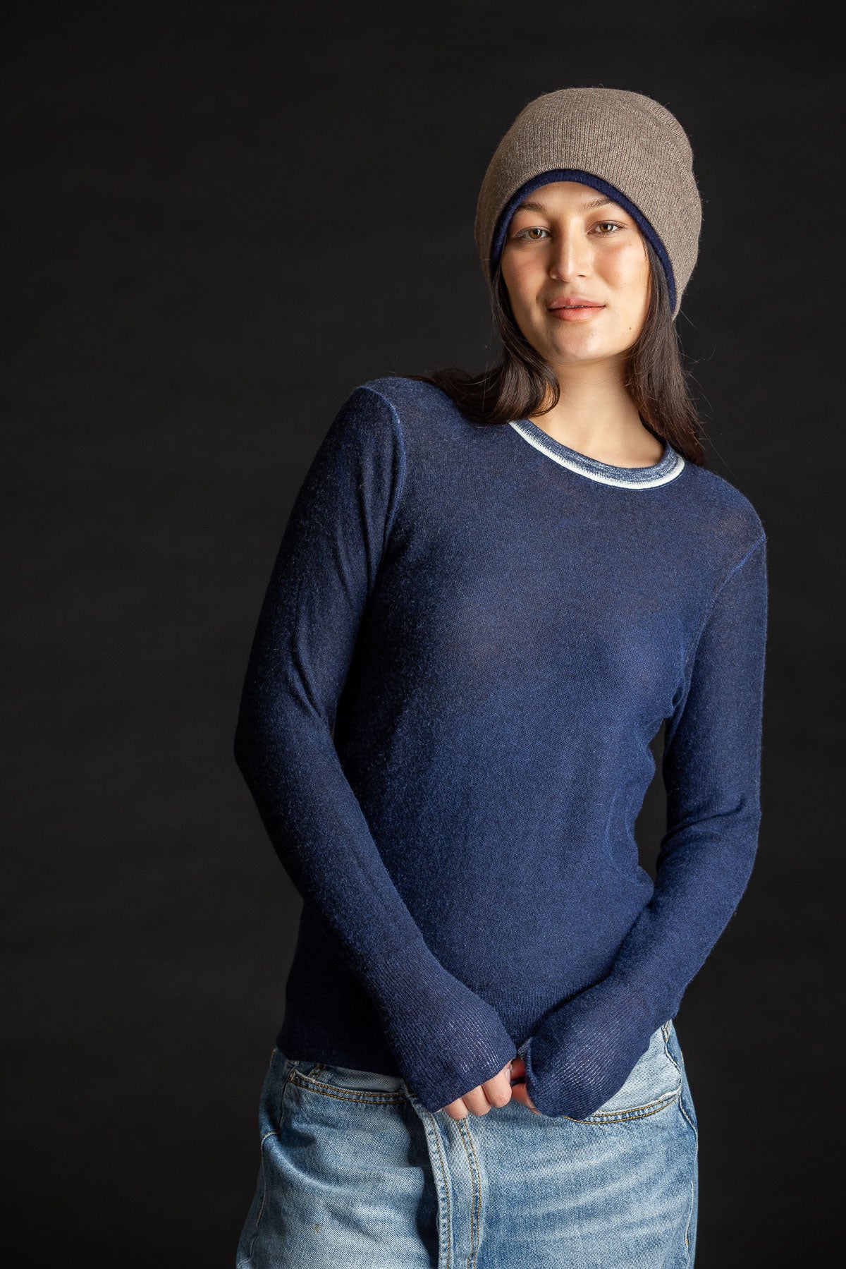 Dreamy Cashmere Block Crew - Beige/Turmeric