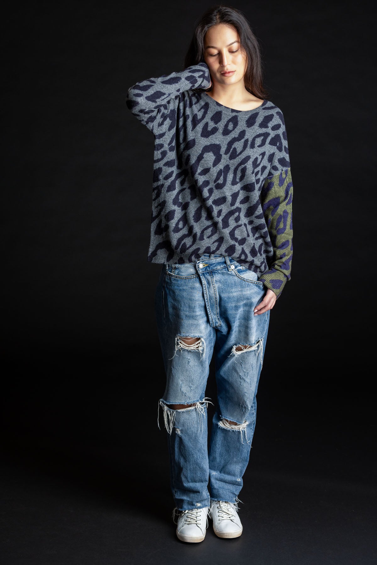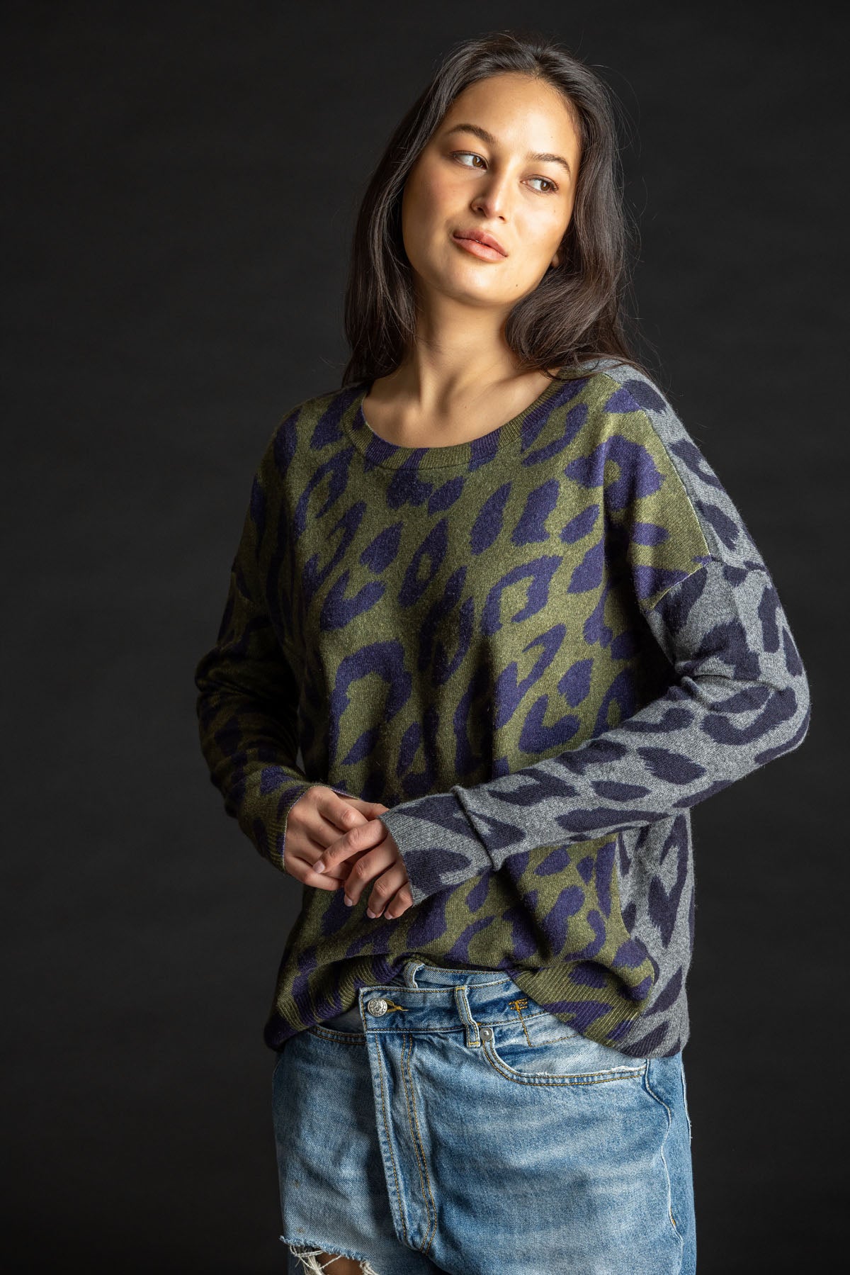 Reversible Leopard Pullover THUNDER/FOREST