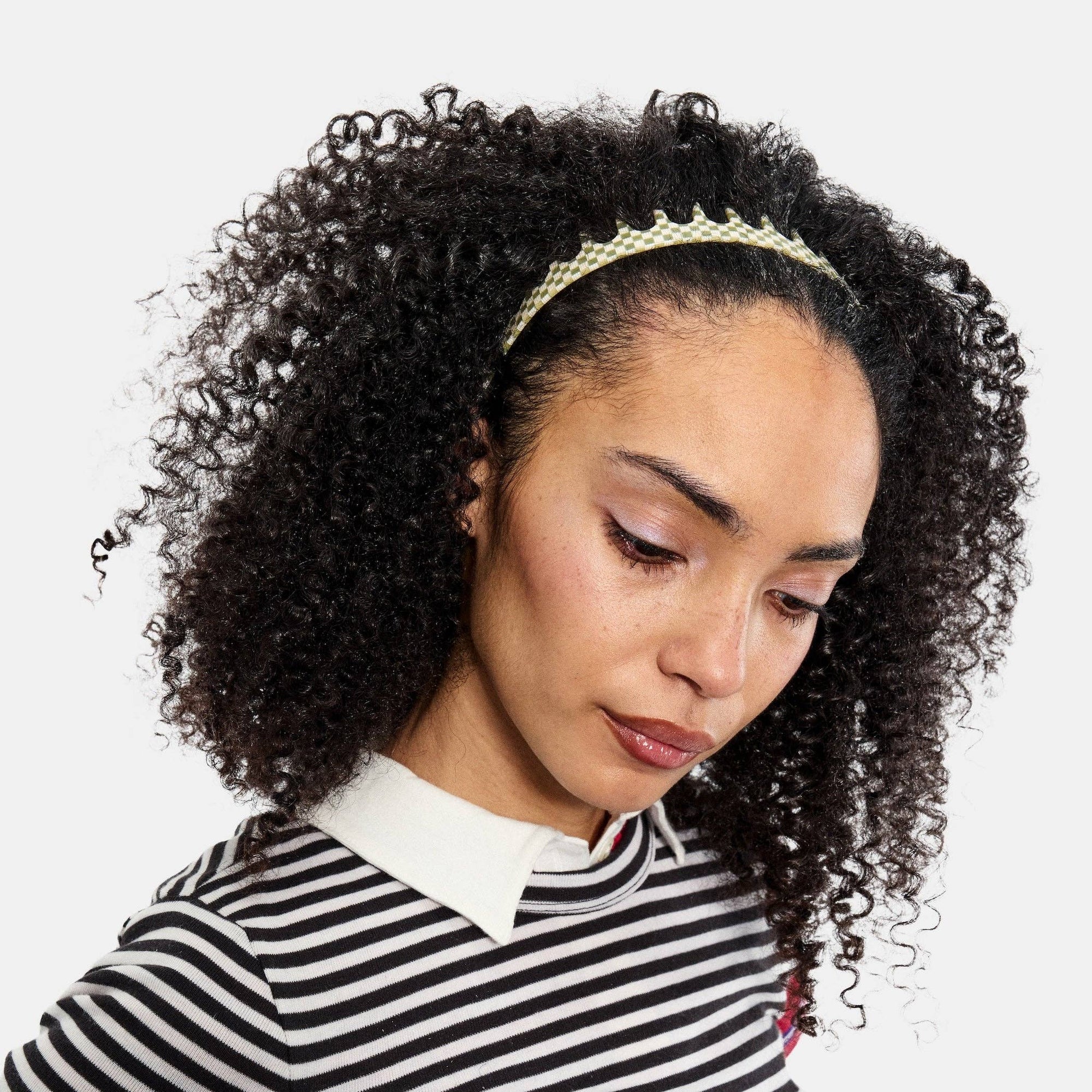 Comb Headband in Olive Check